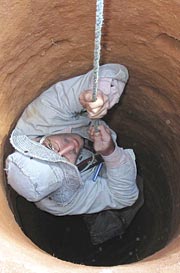 The author descends into a mine near Ilakaka.