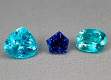 Image: Paraiba tourmalines; origin: Brazil. The pear shaped gem (left) is the highly desirable Carribean Blue (image courtesy Pala International)